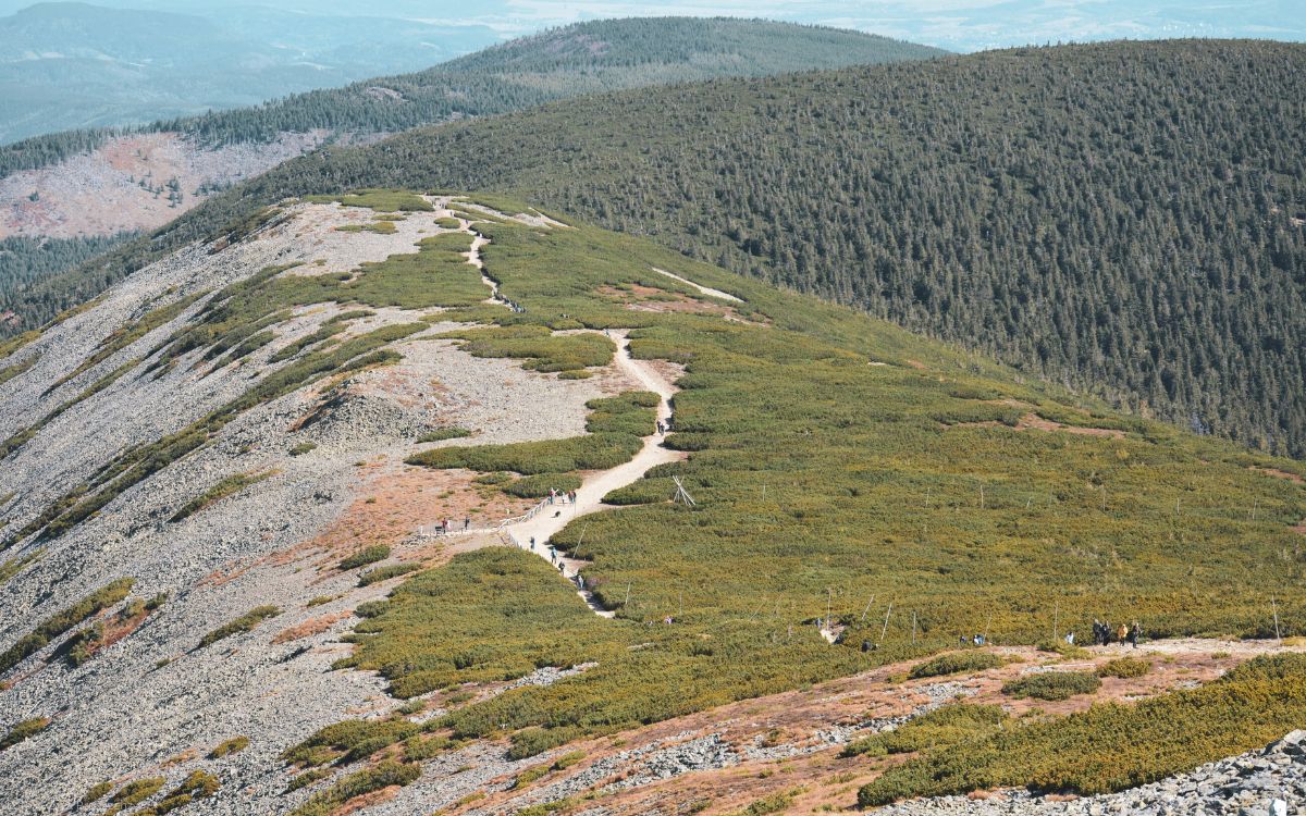 Der Nationalpark Krkonošský národní park (KRNAP) schützt die einzigartige Flora und Fauna dieser Gebirgswelt. Hochmoore, Bergseen und subalpine Wiesen wechseln sich ab mit tiefen Tälern, dunklen Fichtenwäldern und schroffen Felsen. In den höheren Lagen begegnet dir die Stille der Berge, während unten kleine Orte mit urigen Pensionen, Gasthäusern und Skihütten einladen, zur Ruhe zu kommen.